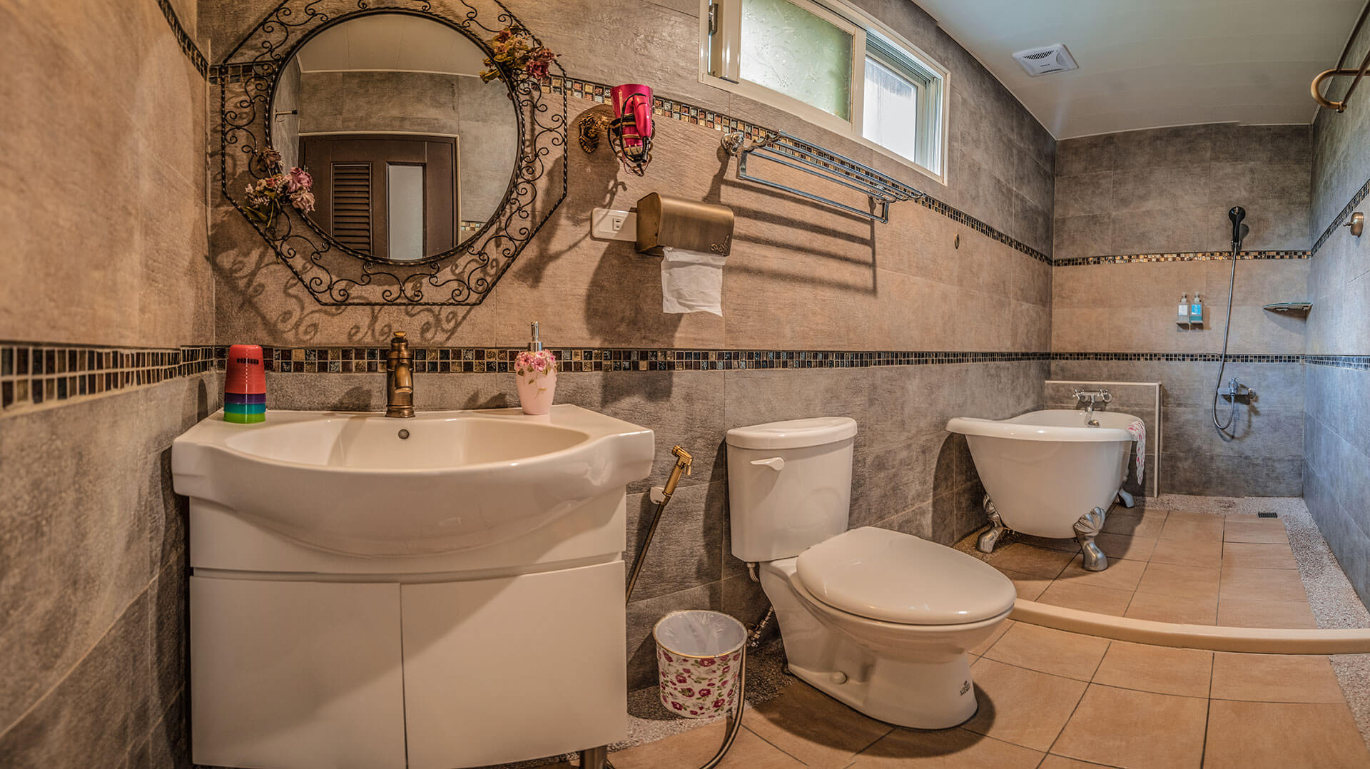 頂級古典浴缸、盥洗用品、吹風機